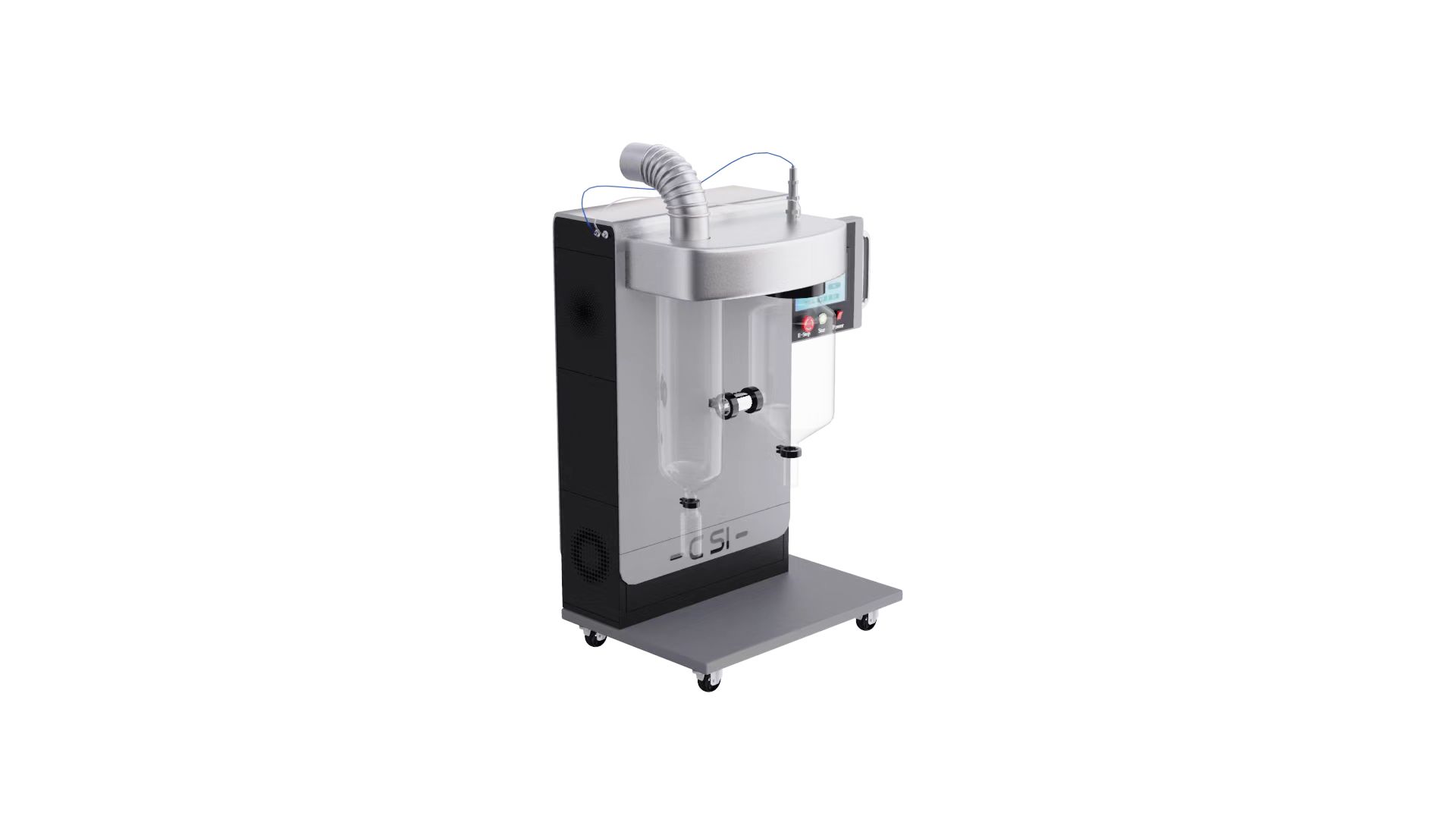 15、喷雾干燥机整机全不锈钢制作,二流体喷雾的雾化结构,喷雾、烘干及收集系统采用透明高硼硅耐热玻璃材料制造
