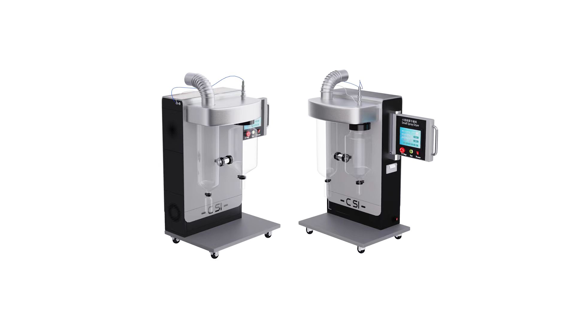 1.小型喷雾干燥机采用彩色大触摸屏操作,全自动控制和手动控制相结合,十段程序控温,自带记忆功能,