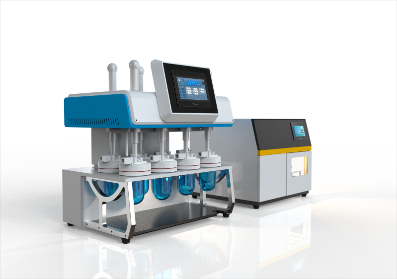 全自动溶出取样收集系统采用了模块化设计,由智能溶出度测试仪、自动取样器和样品收集器组成。采用8杯8桨设计,可进行同等水浴温度的补液操作,配合8路精密注射泵实现高精度自动过滤、取样和补液。最多可进行8片制剂或2批次制剂的溶出度实验。完全符合国家固体制剂一致性评价需求。