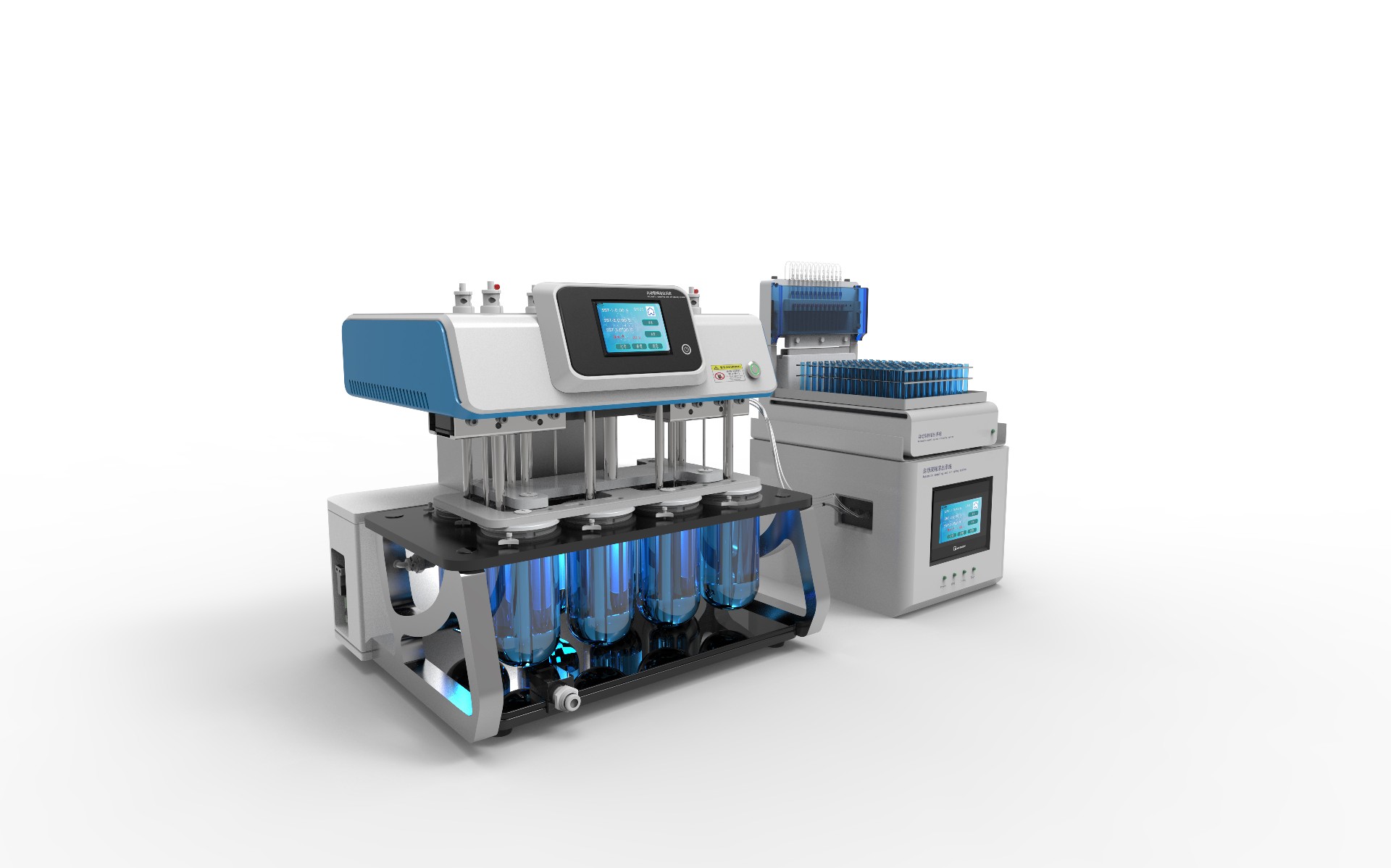 自动取样溶出系统是由自动溶出度仪和自动取样仪组成的自动取样溶出度试验装置,该系统采用4路高精度注射泵实现自动过滤、取样和补液。产品拥有高精度结构先进、控制准确、自动化程度高。其技术参数完全符合《中国药典》、《美国 药典》及国家药监局制定的《药物溶出度仪机械验证指导原则》的要求。