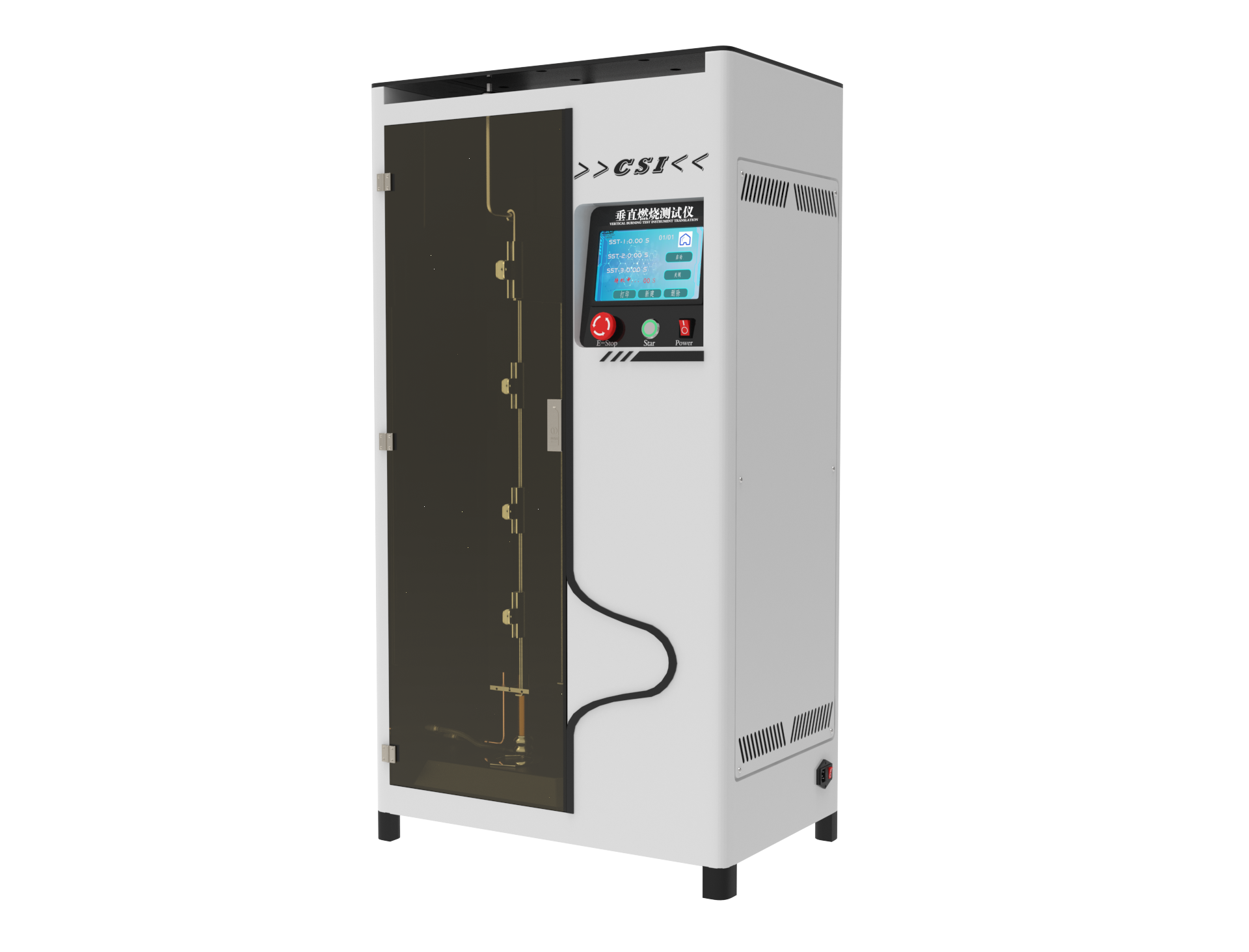 垂直燃烧测试仪用以检测纺织品的燃烧性能。不锈钢测试箱配备玻璃观测窗,从试样燃烧开始时自动计时,准确至0.1s。点火时间可自由设置。