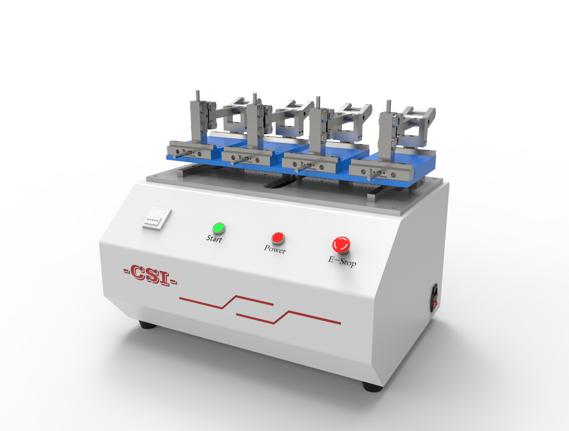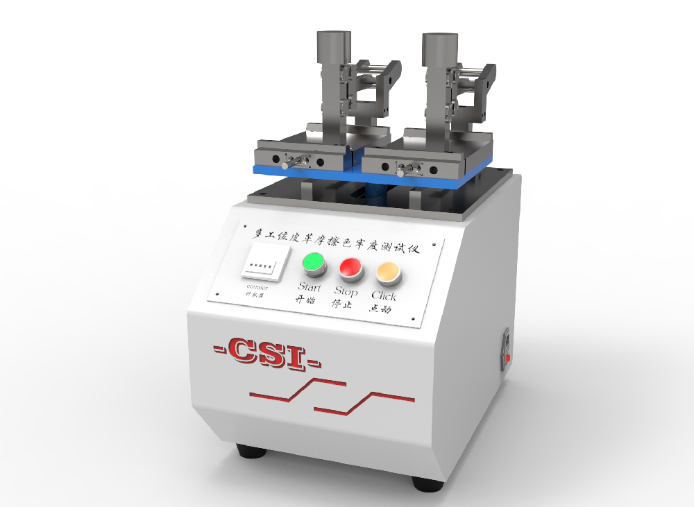 该仪器用于皮革表面摩擦牢度的测试,通过确定皮革表面或涂层的“掉色”程度和羊毛毡的沾色程度来评估颜色的转移情况。试验时,以干燥或湿润的白色羊毛毡,包于摩擦表面,然后往复摩擦夹在试验台上的试片。有干、湿两种测试方式。