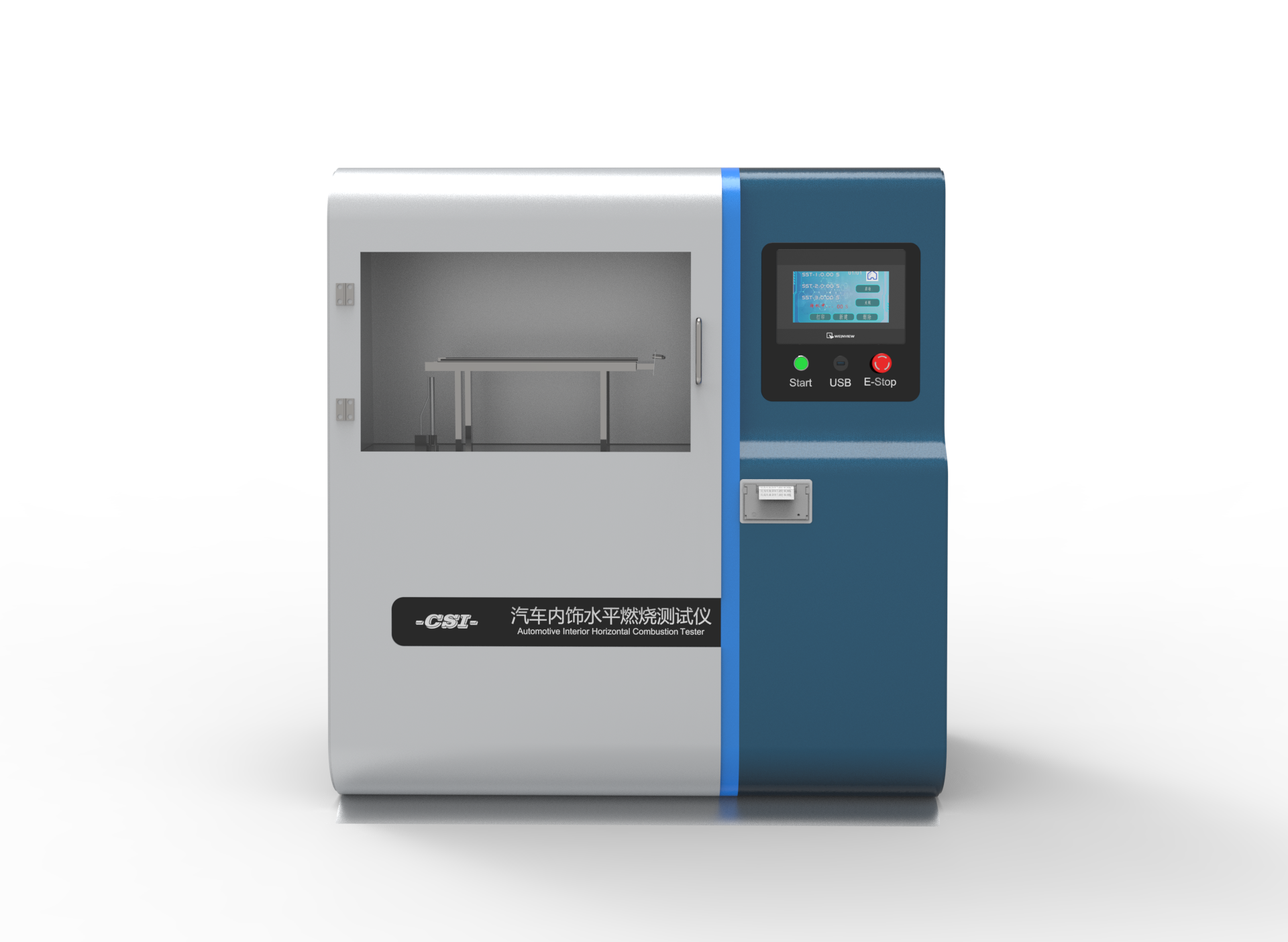 a.燃烧箱体:不锈钢材料,拉丝处理;装有地脚使气体流通顺畅;前面有大面积耐热玻璃构成,便于试验现象的观察;上侧开设排气窗;顶盖可以打开。