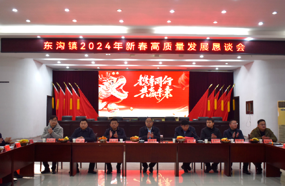 红梅含苞傲冬雪,绿柳吐絮迎新春。今天上午,东沟镇举办新春高质量发展恳谈会,镇党委书记张恩海、镇长张伟等班子领导和40余名东沟籍在外创业、就业的返乡人士、以及本土企业家欢聚一堂,共度佳节、共谋发展、共话未来。会议播放了阜宁宣传片,党委副书记李长正推介产业发展及招商政策情况,各位在外有成人士及企业家畅所欲言,交流东沟新的变化和发展建议。