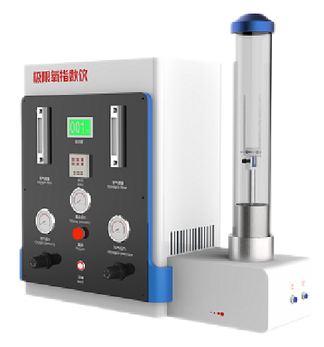 用于评定聚合物在规定试验条件下的燃烧性能的设备,即测定聚合物刚好维持燃烧的Z低氧的体积百分比浓度。两个玻璃转子流量计分别控制氧、氮流量。
