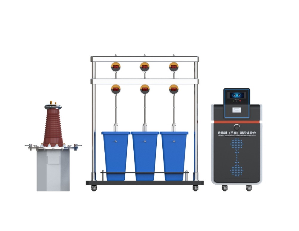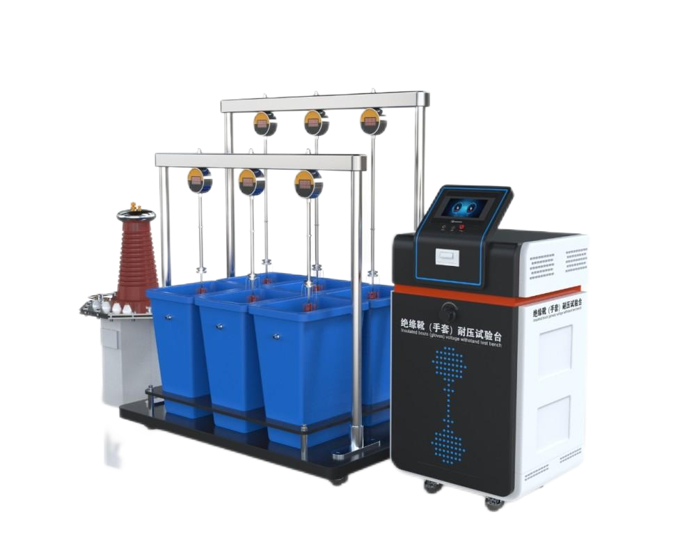 仪器对绝缘鞋、绝缘手套等安全工器具进行智能化绝缘耐压试验,绝缘靴及绝缘手套耐试验周期为半年,试验过程中不允许击穿,同时绝缘靴绝缘绝缘手套泄漏电流不大于限定值