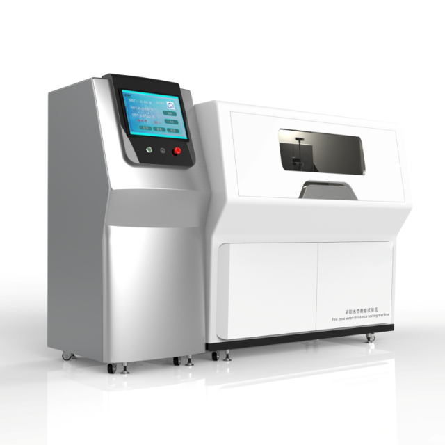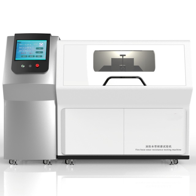 消防水带耐磨试验台-消防水带耐磨试验装置-磨损试验机是根据GB6246-2011《有衬里消防水带性能要求及试验方法》中5.12要求设计制作的,主要是用于编织性消防水带、农用水带的耐磨性能试验的检测项目,可适用于506580,100等耐磨磨头采用重力方式产生压力,施压准确,水带顺时针旋转,压力105N±5N,行程80mm,采用GB/T2481.2规定的#240磨粒砂带,行程为50~300可调。