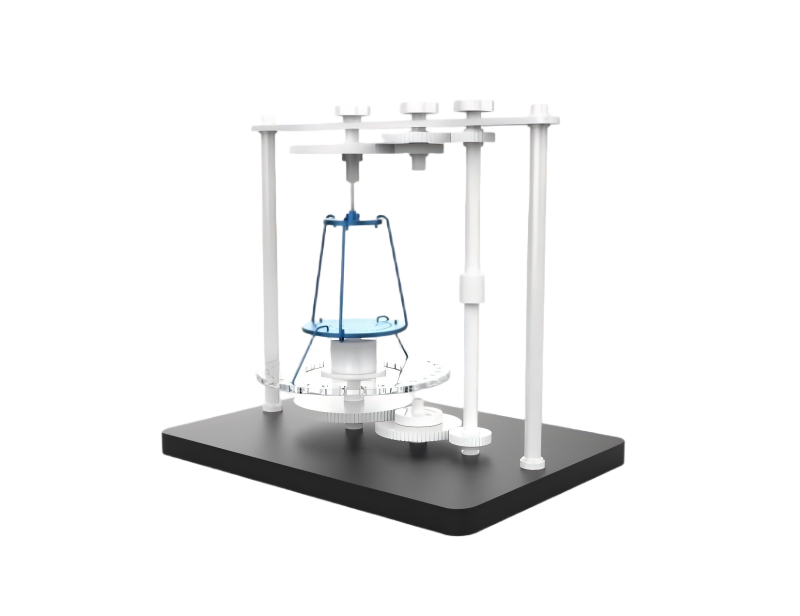 磁致扭矩测量装置于磁共振系统中的静磁场对器械产生扭矩,使器械长轴沿磁场方向排列,该扭矩可通过扭摆法测量将器械放置在悬挂于扭簧的载物盘上。试验装置位于磁共振设备的磁体中央磁场均匀处。扭矩大小取决于载物盘相对于平衡位置的偏转角。通过旋转支撑扭和载物盘的框架,可测得植入物的偏转角,从而计算出扭矩。将最大扭矩与器械的最恶劣重力矩进行比较,最恶劣重力矩等于器械最大线性尺寸和重量的乘积。
