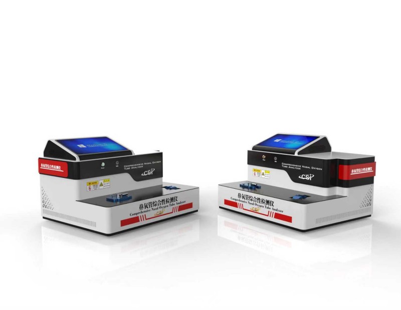一款用于测试鼻氧管气流阻力、抗扁瘪性等多项性能的设备,也称为鼻氧管气流阻力和抗扁瘪性检测仪、鼻氧管检测设备,符合YY/T 1543-2017《鼻氧管》的测试要求。该设备适用于所有鼻气管,不论是独立的鼻氧管还是用于和湿化瓶、面罩连接的鼻氧管。可测试鼻氧管气流阻力、抗扁瘪性、泄漏测试、耐压强度,耐弯折(通畅性)等指标。