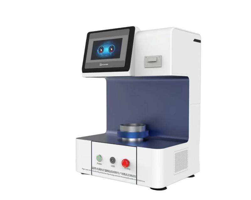 使空气强行通过被一种液体湿化的材料的孔隙,观察所需的压力,用该压力与已知的液体表面张力估计材料中孔隙的大小。