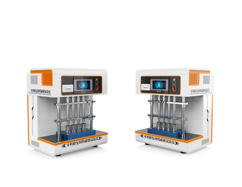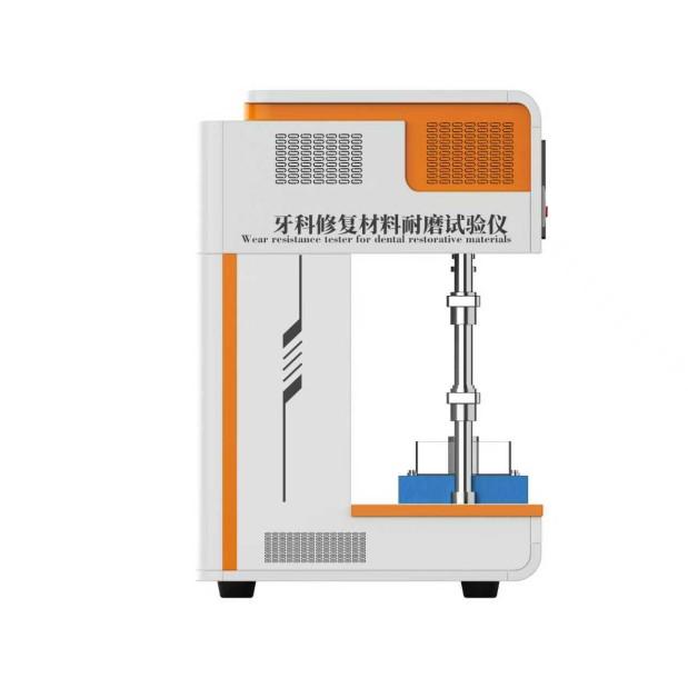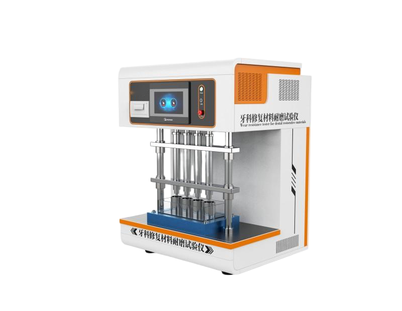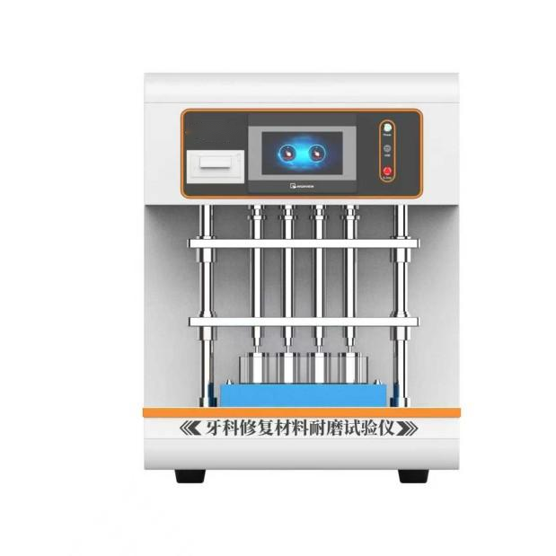 材料在模拟口腔环境下的耐磨性能,其测试原理是通过牙科修复材料耐磨试验仪在80N垂直载荷、1Hz频率下,使用44μm PMMA微珠作为磨损介质,对材料进行400,000次循环的往复磨损,最终通过体积损失和最大深度量化其耐磨性。