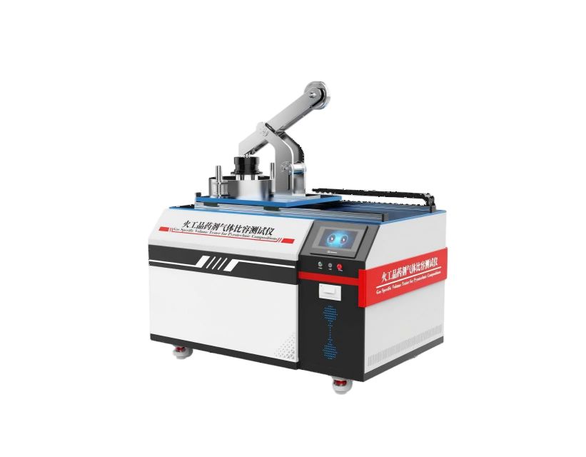将定量被测药剂,在真空、定容的氧弹内引爆(或引燃),30min后,将试样爆炸(或燃烧)产生的气体输入真空量气系统,通过压力传感器,测定气体的压力,再根据理想气体状态方程式,计算单位质量试样产生的气体量,作为试样的气体比容。