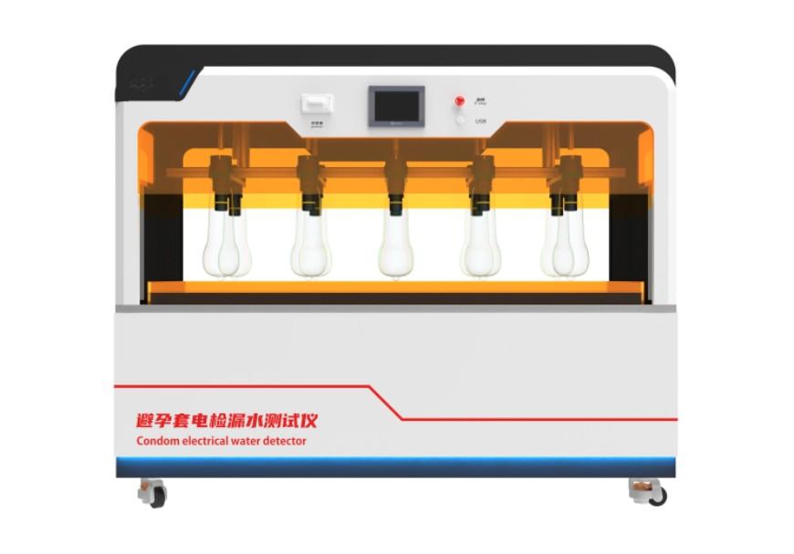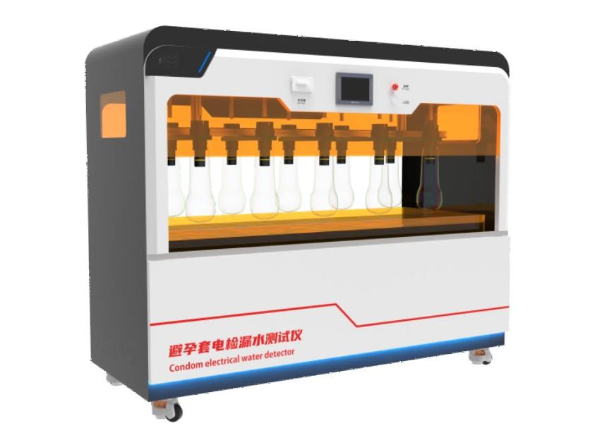 安全套避孕套针孔漏水检查台适用于安全套避孕套,安全套避孕套针孔漏水试验,符合 GB7544-2009 天然胶乳橡胶安全套避孕套技术要求与试验方法。避孕套针孔漏水测试仪是一种专门用于检测避孕套是否有针孔漏水的设备。它通常由一个容器和一个气泵组成。使用时,将避孕套放入容器中,然后用气泵将一定压力的空气注入容器。如果避孕套有针孔漏水,空气会从针孔处逸出,从而产生气泡或其他指示,以便用户可以检测到问题并及时更换避孕套。这种测试仪可以帮助确保避孕套的完整性和可靠性,从而提高避孕效果工位测试空间,可同时进行试样测试旋转式试验台,方便观察监测不同试样结果漏斗式填充口,用户操作更便捷