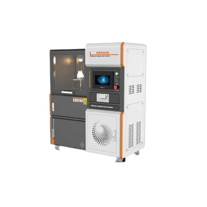 耐黄变测试箱适用于仿真阳光的紫外线辐射及热度,试样于机台内经紫外线照射与温度作用, 经过一段时间后,观察试样耐黄变的程度,可用染污灰色标作参考,判定其黄变的等级,测试时间依厂商的协议而定。机台附件齐全,可作为基本的耐黄变试验,亦可当老化试验机及烘箱使用,呈现一机多用途的功能。