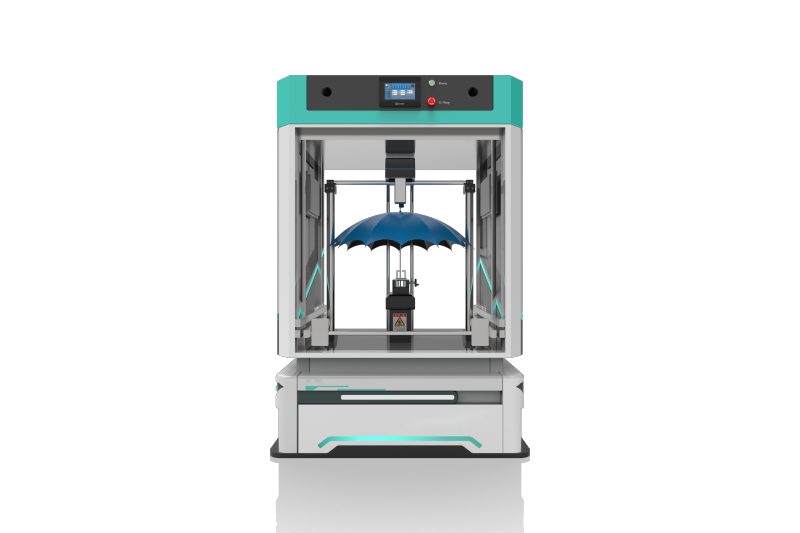 雨伞开合试验机是雨伞试验机系列之一,本机利用气缸伸缩模拟手臂推拉伞杆,检测晴雨伞连续开关一定的次数后晴雨伞会不会产生损坏(开关失灵、伞盘缺损、弹簧失灵、伞骨折断连接脱落等 )
