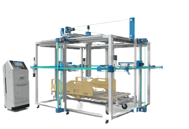 2. 可固定住电动病床,并对电动病床护栏的4个水平方向以及向下的垂直方向施加0-750N的力,步进不能大于5N,可自动循环工作,次数可设置,可设置次数应≥5000次。