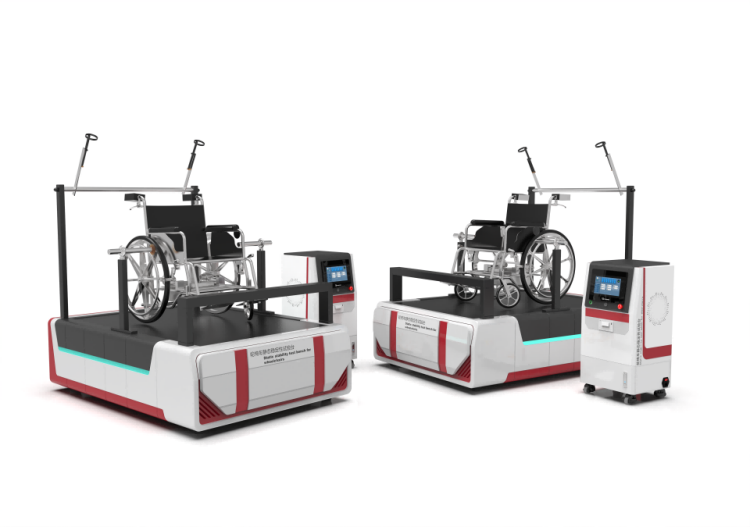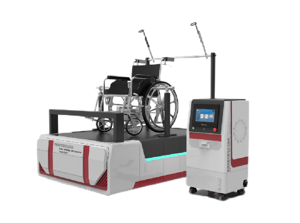 8、配备限制倾翻程度的装置:能够用来限制轮椅车在测试平台上倾斜程度的装置,此装置不影响轮椅车的稳定性,仅限制轮椅车过度倾斜或变形。