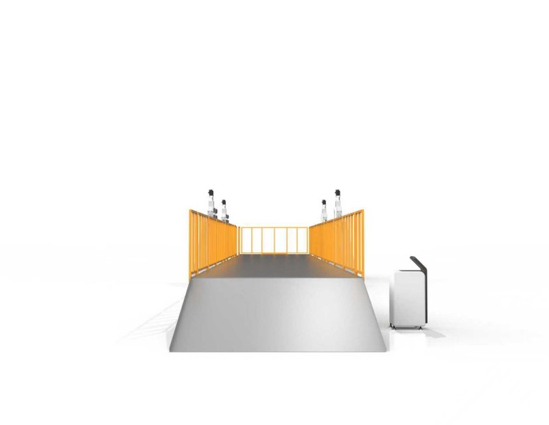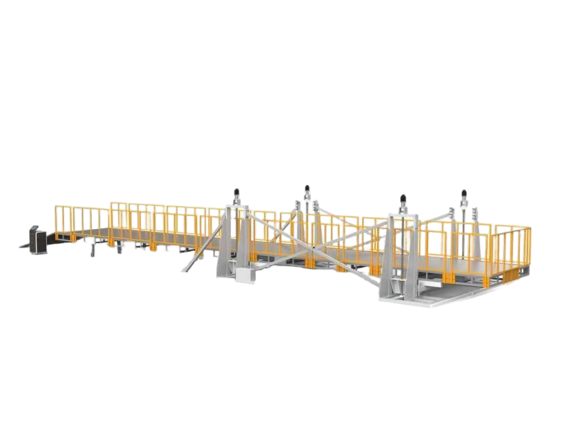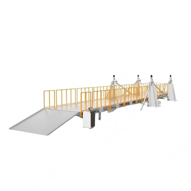 设备全部采用刚性材料焊接加工,保证机台的强度和稳定性,平台采用减速电机丝杆升降,斜坡下有可移动支撑。