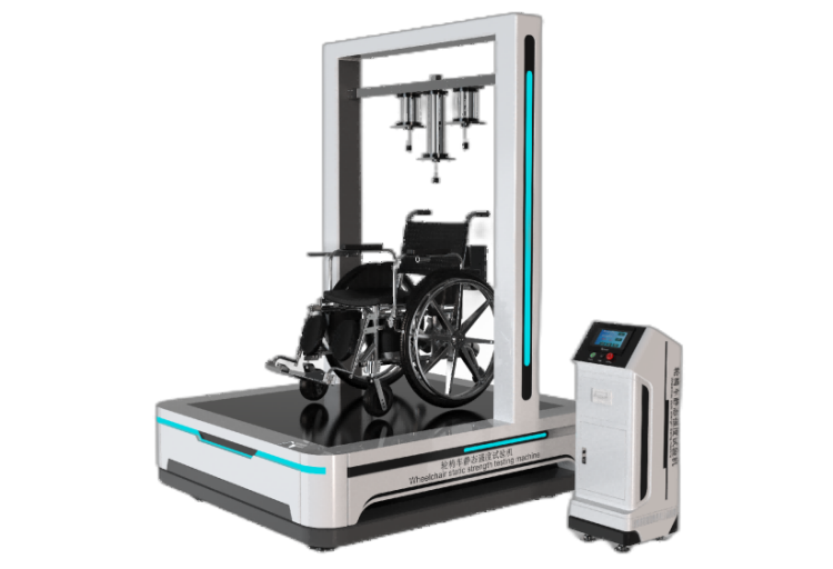 4配备静态强度测试时防止轮椅车翻转设施,设施应能够实现不对未加载荷的轮椅车施加力,而应将约束力施加在测试假人或者轮椅车坐垫表面支撑结构上。