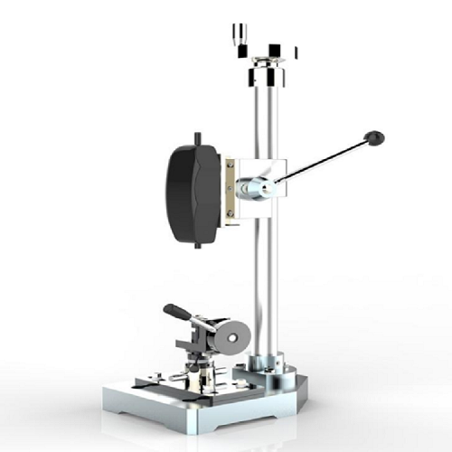 纽扣撞击强力测试仪,可检测塑纽、胶纽的抗撞击阻力,将质量为0.84kg(29.5oz)重物从67mm(2.625英寸)或其他规定高度(至多200mm(8英寸)落下,以纽扣的破裂程度作为考核。