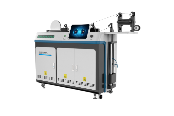 三,,原理:利用伺服电机驱动织带导向轮动作从而拉出和卷收织带,利用气缸驱动卷收器动作实现紧急锁止。
