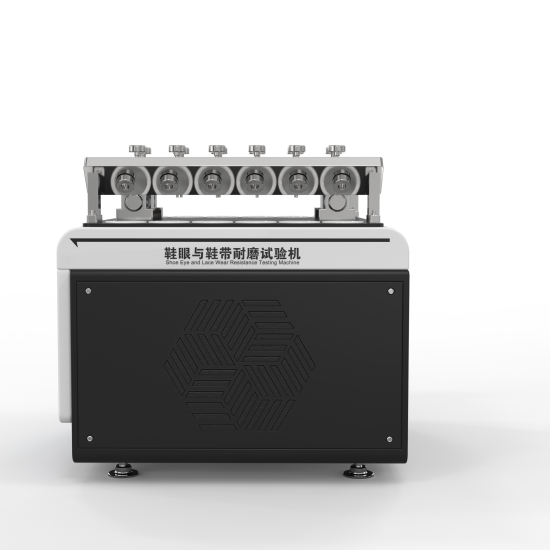 本机适用于做所有鞋带和鞋眼的耐磨性能试验。鞋带通过鞋眼弯折一定角度,在标准荷重下反复拉动,以达到检测鞋带和鞋眼耐磨性能的目的。可同時分別测试6组试样,互不干扰。鞋带耐磨试验机适用于棉、麻及化纤等各种材料的编织鞋带进行耐磨性能的测定。鞋带抗外力磨损的性能,以鞋带经受反复摩擦断裂时的次数表示,或以受磨一定次数后是否断裂表示。鞋带耐磨试验机