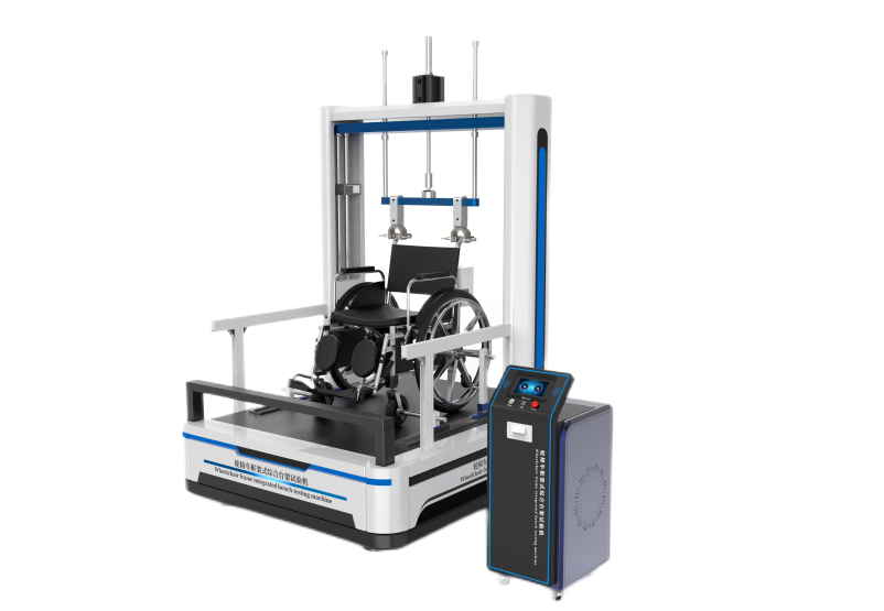 本试验机用于摸拟人在使用轮椅车时不同部份受不同力度之耐用性综合测试,适用于有关生产厂家和质检部门对轮椅车代步车类产品试验。本机采用液品屏全中文显示,使用方便,全部调节数控方式,力度、速度、次数,向上或向下方向测试等。