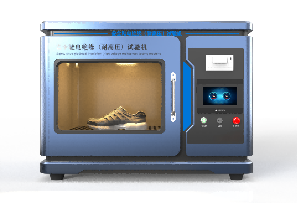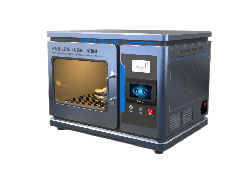 耐高压试验机用于测试安全性鞋、防护作业鞋、以一定的高压通过测试试样,通过测试量试样的漏电流的大小或判断是否存在测试试样被电击穿的现象来评估测试试样是否具有耐高压绝缘性能。