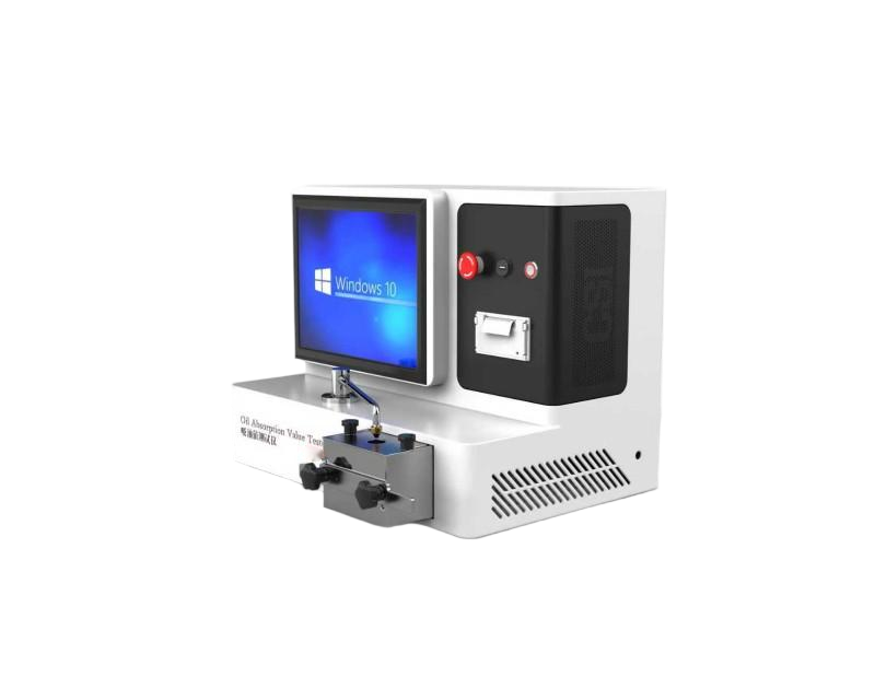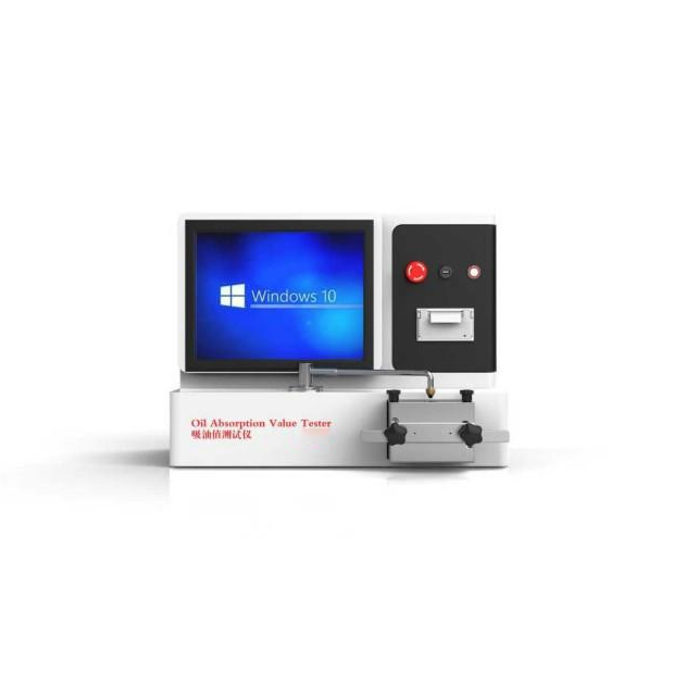 在测量中,粉末样品放入述混合室并且当两个马达驱动的旋转翼同时搅拌时,一定量的油滴在样品上。通过检测扭矩的粘度变化,以计算吸收剂量量ml/100g ,吸油值及压样吸油值测量数据被打印出来包括在该地区搅拌的吸收剂量,扭矩变化曲线和温度。