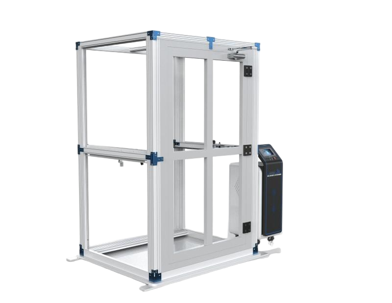 模拟人反复启闭门,适用于建筑门窗的反复启闭疲劳试验,采用电动驱动推拉。可设置推拉长度,推拉次数,推拉速度等。到达设定的次数,自动停机。原按键式液晶屏改为7寸触摸屏。