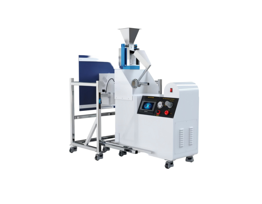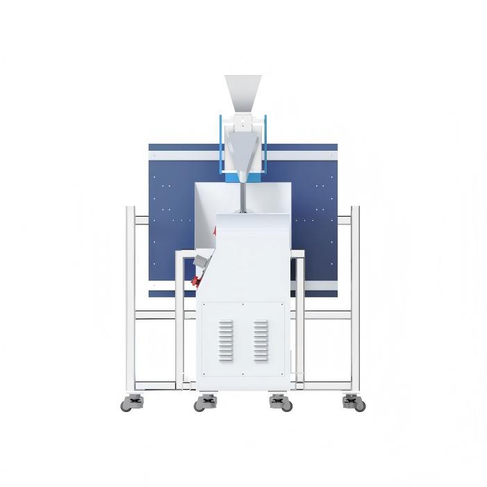 砾石或其它介质放在加料斗里,加料斗里的振动送料装置将料送到送料斜槽中。由底下高速空气而产生的真空,介质落到送料斜槽中。介质被吸入喷嘴中,被空气喷射器发射到试样上。介质撞上试样后落入碎石箱中。