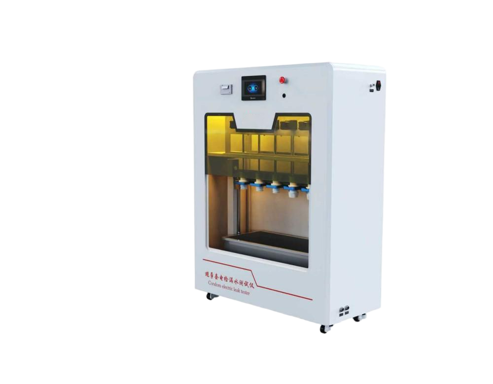 安全套避孕套针孔漏水检查台适用于安全套避孕套,安全套避孕套针孔漏水试验,符合 GB7544-2019天然胶乳橡胶安全套避孕套技术要求与试验方法。避孕套针孔漏水测试仪是一种专门用于检测避孕套是否有针孔漏水的设备。它通常由一个容器和一个气泵组成。使用时,将避孕套放入容器中,然后用气泵将一定压力的空气注入容器。如果避孕套有针孔漏水,空气会从针孔处逸出,从而产生气泡或其他指示,以便用户可以检测到问题并及时更换避孕套。这种测试仪可以帮助确保避孕套的完整性和可靠性,从而提高避孕效果工位测试空间,可同时进行试样测试旋转式试验台,方便观察监测不同试样结果漏斗式填充口,用户操作更便捷