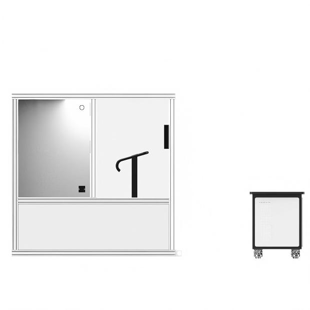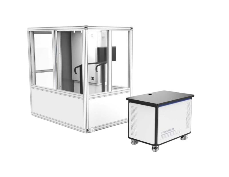 6.口罩总泄漏率测试装置检测仓:尺寸:长度:≥200 cm;宽度:≥130 cm;高度:≥215 cm;测试无横向气流干扰时的受试者头部上方30 cm处风速:≤0.2 m/s;测试横向气流时的受试者头部位置处风速约为2 m/s(需来自受试者前方、后方和侧方(左侧或右侧)3个方向);全不锈钢框架,真空钢化玻璃材质;仓内设置有可视化操控系统,可以与工作站控制软件同步;