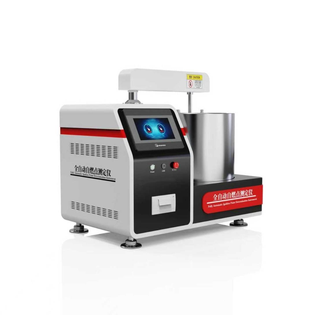 采用先进的AI人工智能调节算法进行控温,使容器内部温度达到热平衡,自动恒温、自动进样、燃点自动检测、自动吹烟,仪器自动打印结果,当试样在烧瓶里燃烧产生火焰时,表明试样发生了自燃。若在5min内无火焰产生,则认为在该温度下试样没有发生自燃。发生上述现象时的最低温度,确定为被测试样的自燃点。