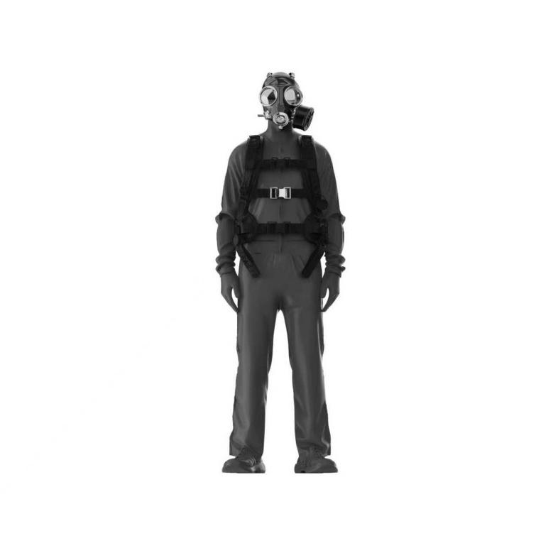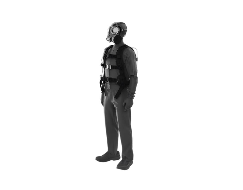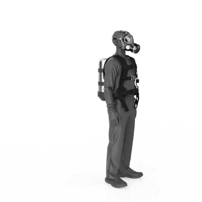 1. 选择一套适合人体模型胸围尺寸的防护服穿在人体模型上,并按照正压式消防空气呼吸器的使用说明,给人体模型正确佩戴正压式消防空气呼吸器,形成一个测试假人。