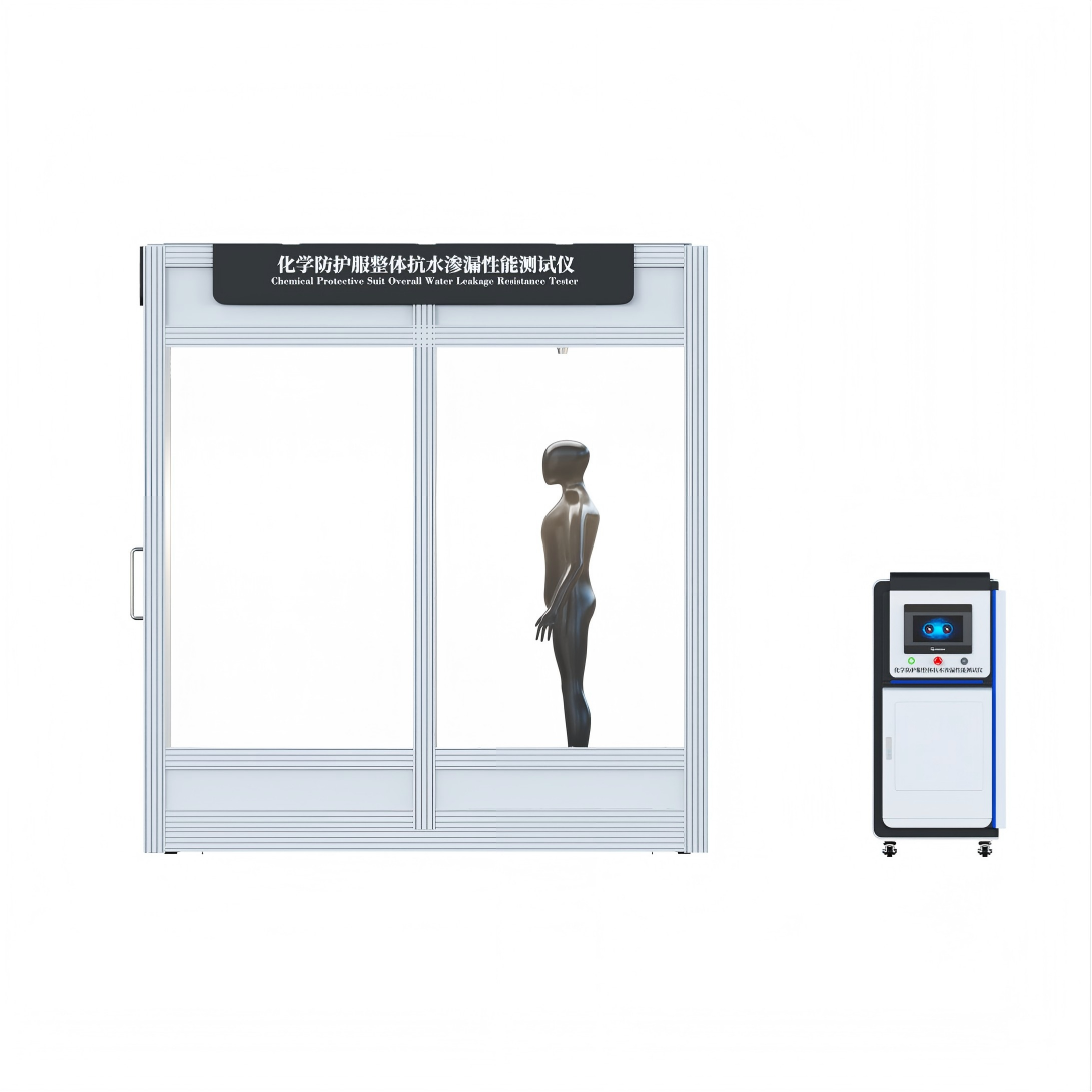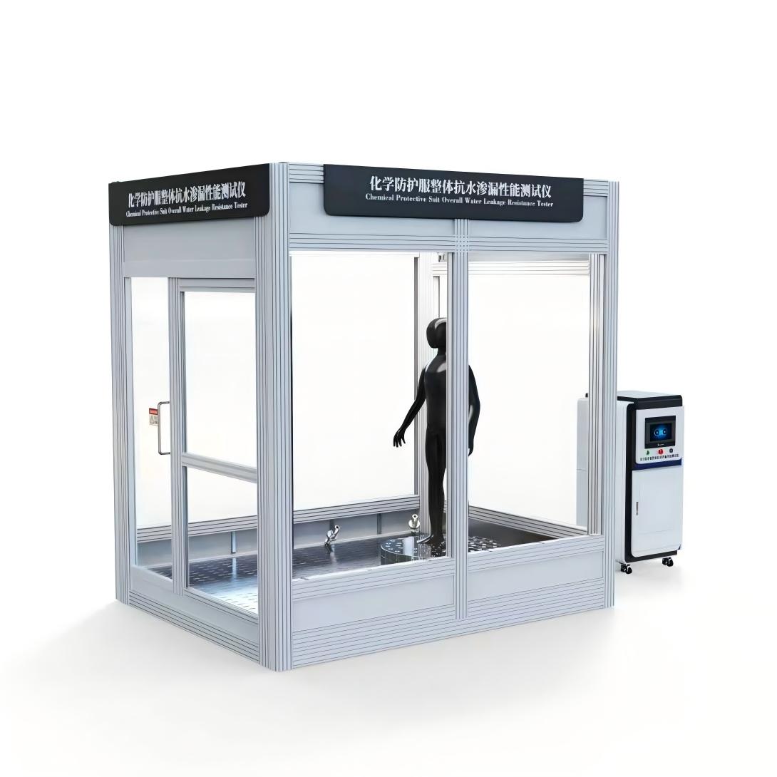 本仪器从不同角度用水枪冲刷化学防护服装,测定服装内部渗漏情况。