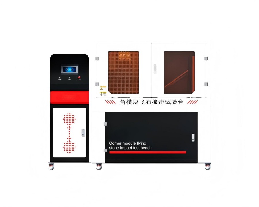角模块飞石撞击试验台飞石试验台,35m/s高速与50g大质量组合可模拟极端冲击,0.1g小质量与≥10Hz高频组合能复现持续磨蚀,士45°角度可调全面覆盖真实撞击场景。设备实现了多维极限参数的高精度集成控制,为角模块的可靠性评估及行业标准制定提供了至关重要的研发装备