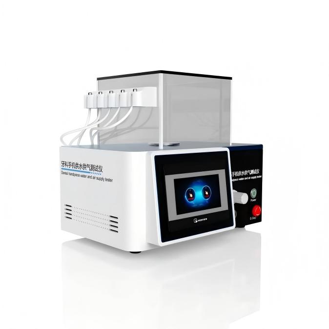 牙科手机供水供气测试仪是用于检测牙科手机(如高速涡轮手机、低速弯机等)在工作状态下供水、供气系统性能的专业设备,确保其符合国家医疗器械标准YY 1045-2021和YY/T 0514-2018的要求,保障临床使用的安全性与稳定性。