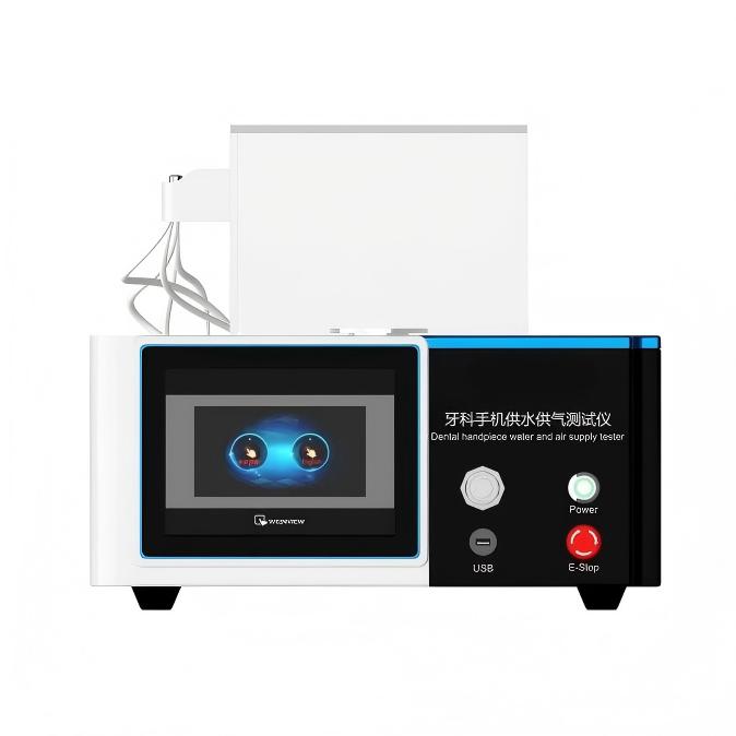 这类测试仪主要通过模拟牙科手机在治疗过程中的实际运行环境,对驱动气压、冷却水压、气路流量、喷雾效果等关键参数进行精确测量与调控,确保手机在高速旋转时能获得稳定气源和有效冷却,防止过热损伤患者组织或降低治疗效率。