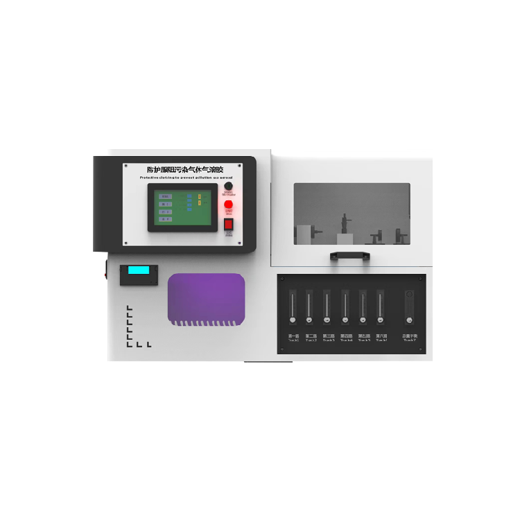 防护服材料, 由于预期接触由污染液体所产生的气溶胶, 所以需要测定其抗污染液体气溶胶的穿透性能,用以表征防护服材料对污染液体的防护效果。用于测试医用防护服或无菌医疗设备包装材料,在标准试验指定的条件下微生物屏障特性。