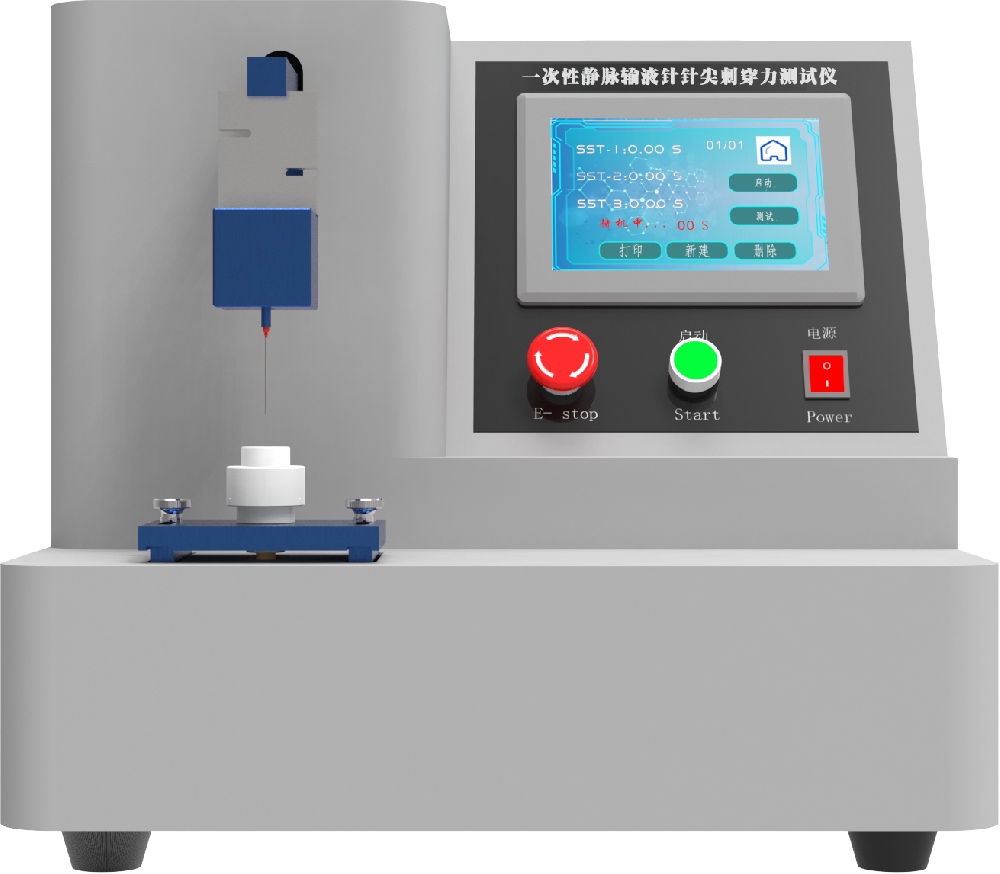 将被检针装在设备上,其轴线垂直于模拟皮肤的表面,针尖指向圆形穿刺区域的中心。